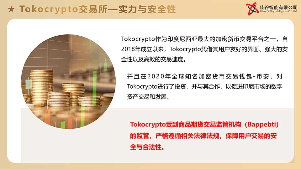 Tokocrypto 是亚太最大的加密货币交易平台之一,成立于 2018 年。凭借其用户友好的界面和强大的安全性,Tokocrypto 迅速崛起,成为市场的佼佼者。在短短几年内,其市场份额在 2023 年达到了 43.0%,在三大中心化加密货币交易所(CEX)中名列前茅。 在 Tokocrypto 交易所,用户可以轻松交易各种加密资产。平台支持多种主流加密货币,如比特币、以太坊和 Ripple 等,满足不同用户的需求。Tokocrypto 提供快速的交易速度和相对较低的手续费,为用户创造了良好的交易体验,并吸引了大量新用户加入。 Tokocrypto 非常重视平台的安全性,采取多种保护措施确保用户的资产安全。目前,Tokocrypto 所受到印尼商品期货交易监管机构(Bappebti)的监管,Tokocrypto 严格遵循相关法律法规,保障用户的交易安全和合法权益。 随着金融服务管理局(FSA)或 OJK 将加密货币监管纳入其职责范围,Tokocrypto 凭借其稳定的用户基础和市场定位保持领先,也意味着在全球加密货币生态系统中致力于促进加密货币的普及和应用,为全球用户提供更好的服务和交易体验,推动亚太以及全球的数字经济发展。